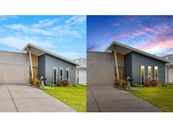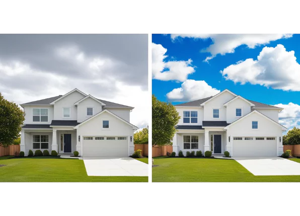 Dull or cloudy skies are replaced with bright blue or sunset skies. This dramatically enhances curb appeal, making outdoor property photos look fresh, attractive, and eye-catching for marketing and listings.